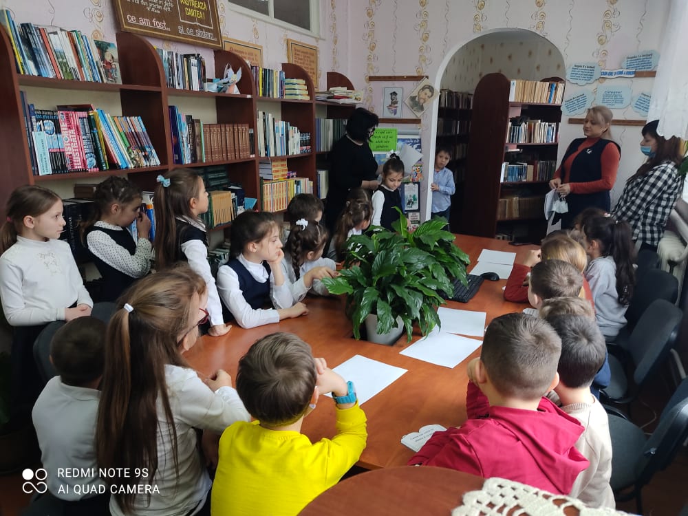 Elevii clasei I și a II-a străbat tainele cărții Dna Popa Maria, bibliotecara instituției, le aduce la cunoștintă cât de bogată este biblioteca și că fiecare carte își așteaptă cititorul său.