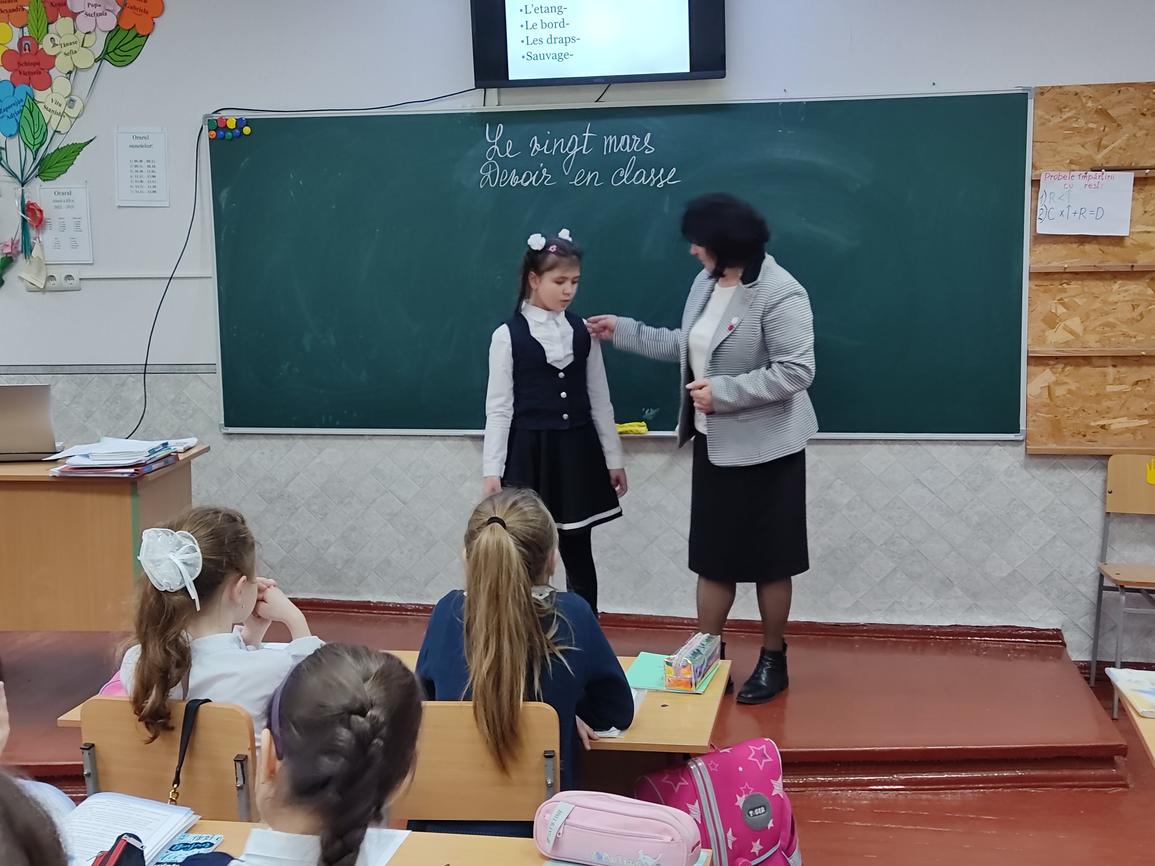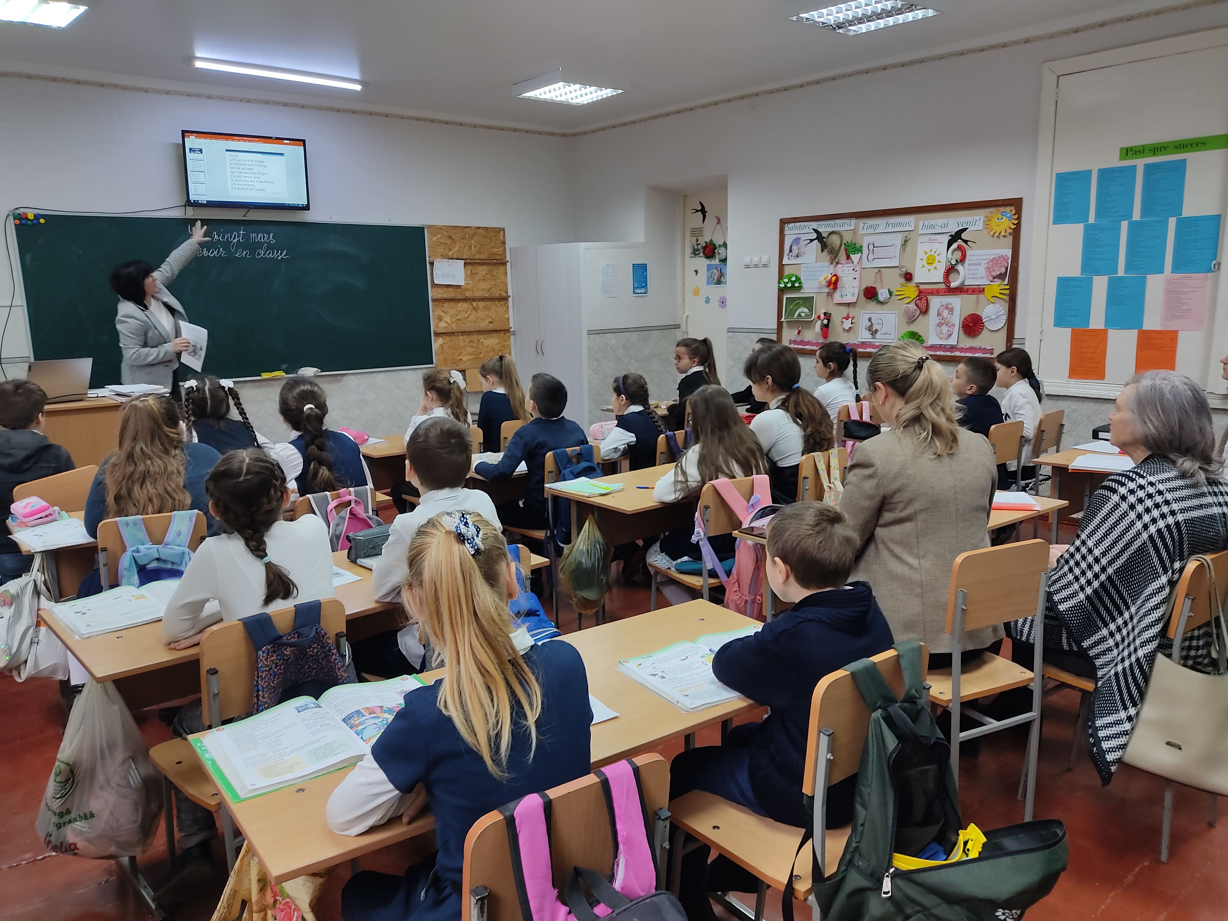 Elevii clasei a III-a, profesoară dna Valentina Pascal, au dialogat, au răspuns la întrebări, au citit și au alcătuit propoziții în limba franceză.
