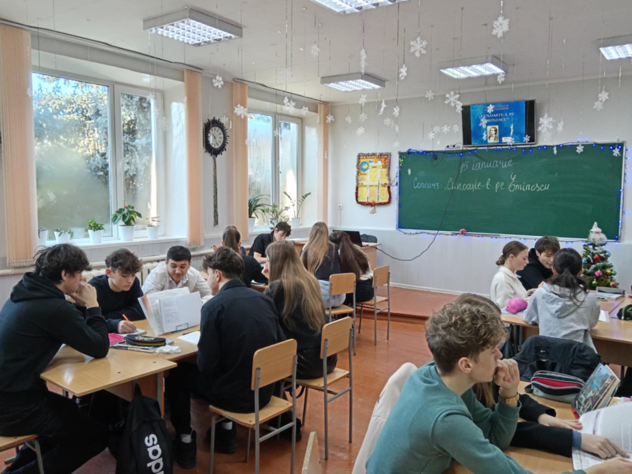 Concurs organizat în clasa a IX-a „Cunoaște-l pe Eminescu”, elevii în echipe au răspuns la întrebări despre viața, operele și importanța poetului. Profesoară dna Eremeeva Anjela