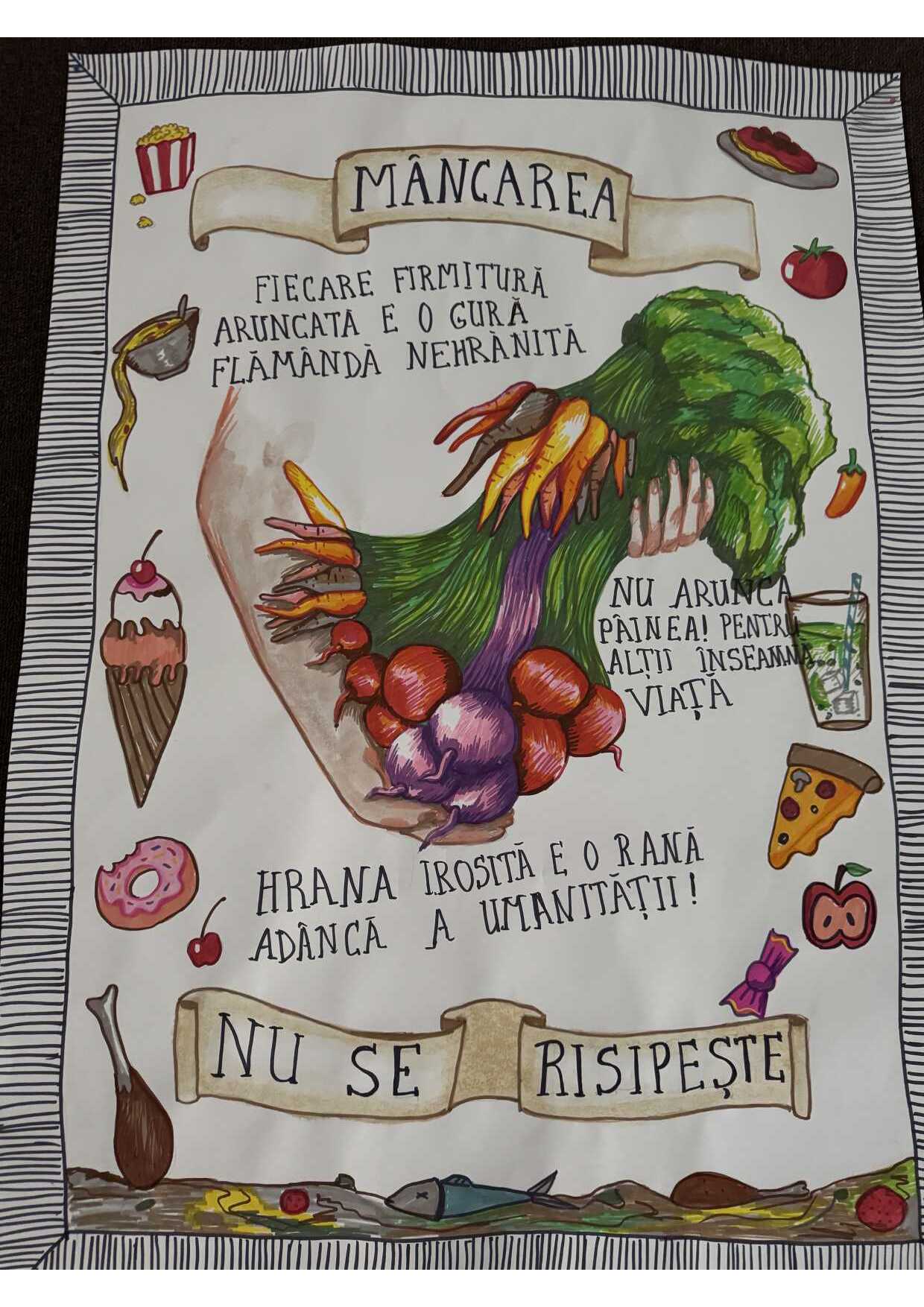 Elevii claselor gimnaziale au realizat postere creative cu slogane menite să ne reamintească tuturor cât de important este să respectăm hrana și să reducem risipa de alimente. 🍎🥖🥗