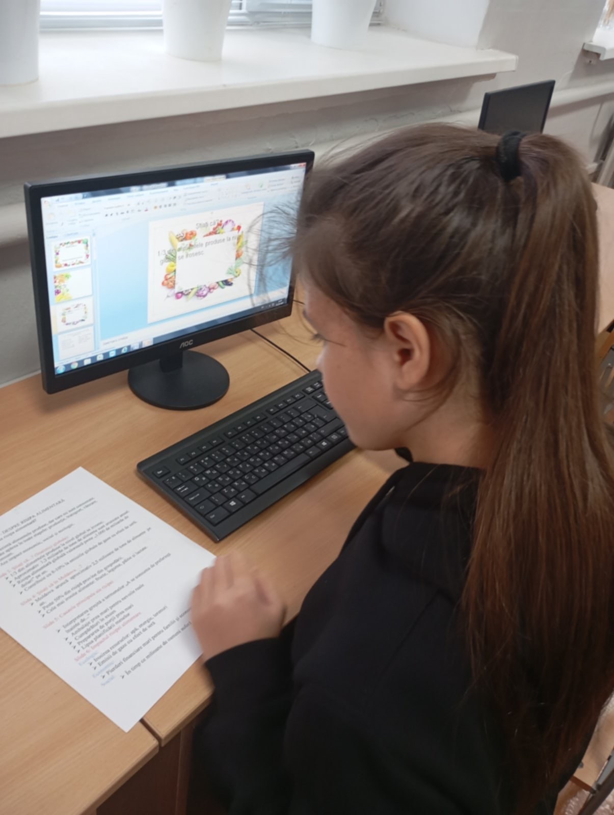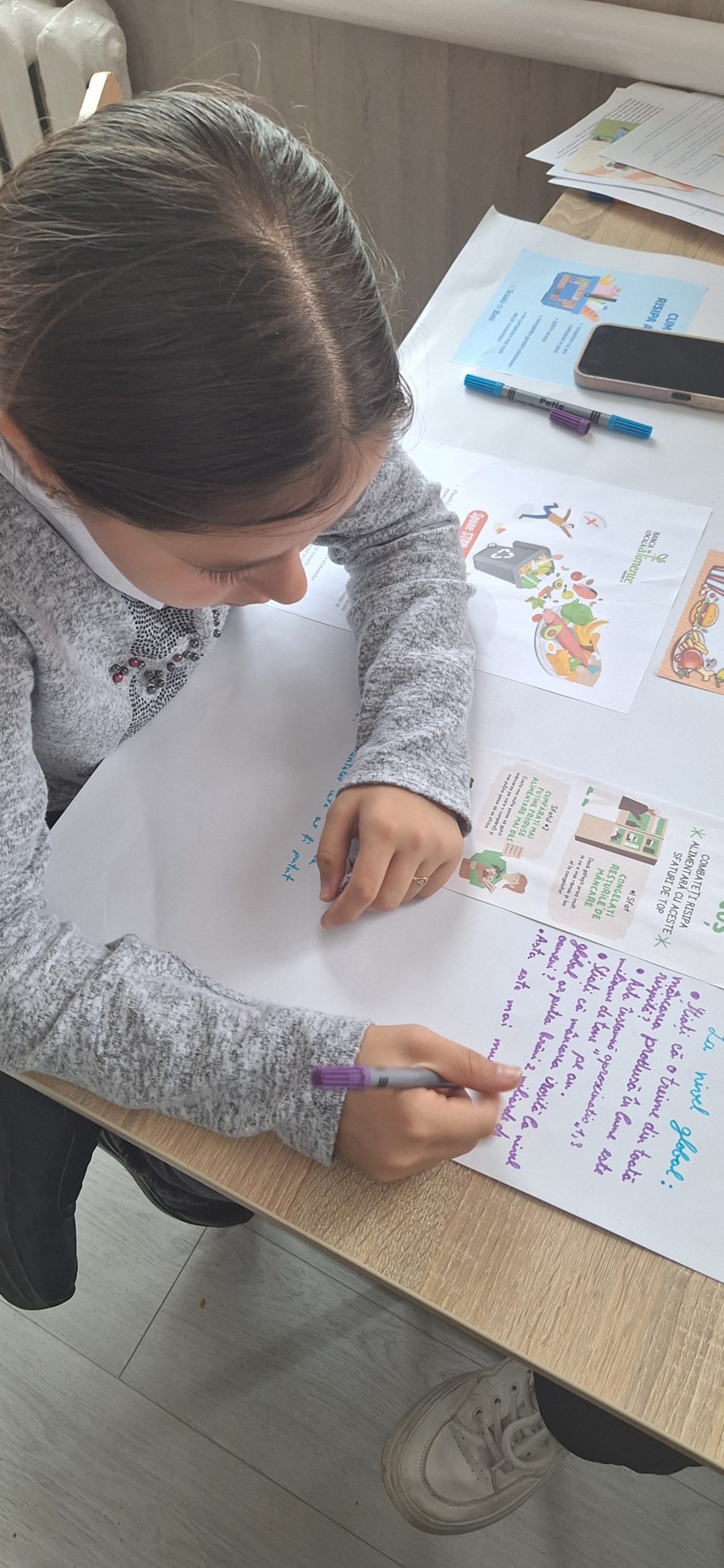 Elevii clasei a VI-a, ghidați de dna Maria Popa, au realizat pliante de informare despre ,,Risipa alimentară”.
